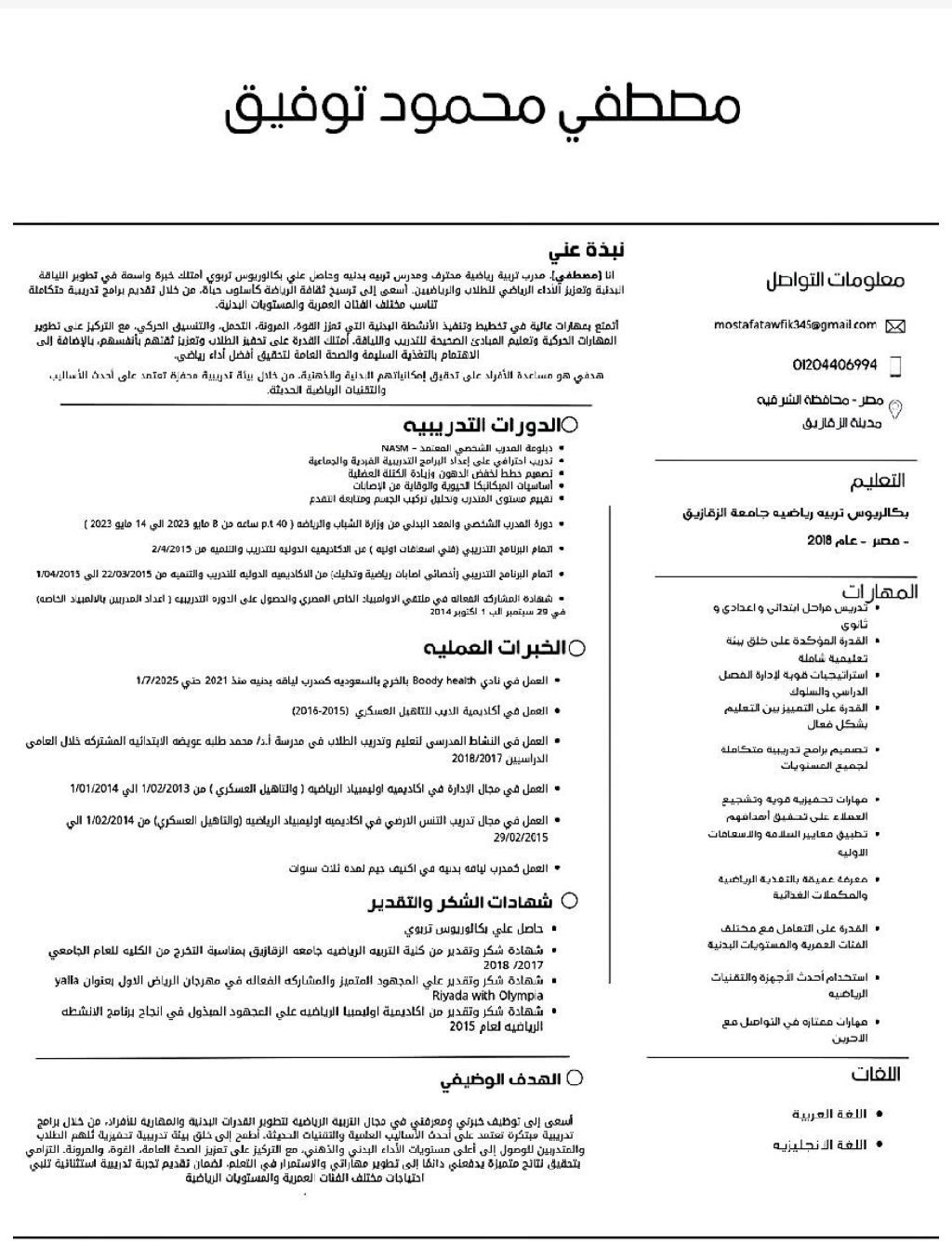 ابحث عن وظيفة مدرب لياقة بدنية ولدي خبرة عمل داخل السعودية سابقا أربع سنوات وحاصل علي cpt من أكاديمية NASM ومعد بدني ومدرب شخصي ومن وزارة الشباب والرياضة