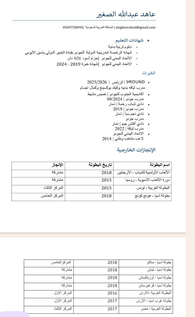 مدرب جودو ولياقة بدنية وكمال أجسام يبحث عن عمل مدرب جودو ولياقة بدنية وكمال أجسام بخبرة أكثر من 7 سنوات في التدريب. أحمل الحزام الأسود (3 دان) في الجودو، ولدي خبرة في تدريب جميع الفئات العمرية (مبتدئين ومحترفين) أقدم تدريب في الجودو - اللياقة البدنية - كمال الأجسام - اعداد البرامج التدريبية وتحسين اللياقة لدي القدرة على تدريب الأفراد والمجموعات داخل الأندية الرياضية أو الأكاديميات