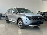 Ford Territory 2026 - Available with installments and cash - Car specifications: 1.8L EcoBoost turbo gasoline engine, 4-cylinder, 190 horsepower, 320 Nm torque, 7-speed automatic transmission (DCT), front-wheel drive (FWD), driving modes: Normal - Eco - Sport - Trail, fuel consumption approximately 12.5 km/L, exterior dimensions and design: 19-inch aluminum wheels, front and rear LED headlights, front grille with chrome accents.