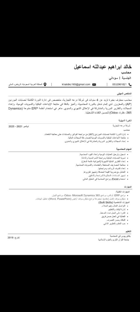 مهندس ميكانيكا بخبرة 9 سنوات، خبرة داخل المملكة مع الهلال الأحمر السعودي كمدير مرافق، كما عملت مهندس تنفيذ أعمال MEP، خبرة قوية في تشغيل وصيانة المرافق وأنظمة HVAC وFire fighting وPlumbing، ولدي خبرة في إدارة الورش المركزية وصيانة المعدات بالمقاولون العرب. متواجد في الرياض وجاهز للانضمام فورا