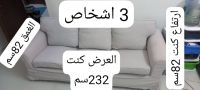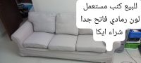 كنب مستعمل من أيكا اللون رمادي فاتح جدا العدد 2 كنب كما في الصورة. الوجه للكنب يفك ويركب من اجل تنظيف المواصفات مكتوبة على الصورة. العنوان الرياض. حي الخالدية شارع ضرار ابن ازور. السعر 375 ريال. وغطاء بلون خمري. مجانا مع كنب