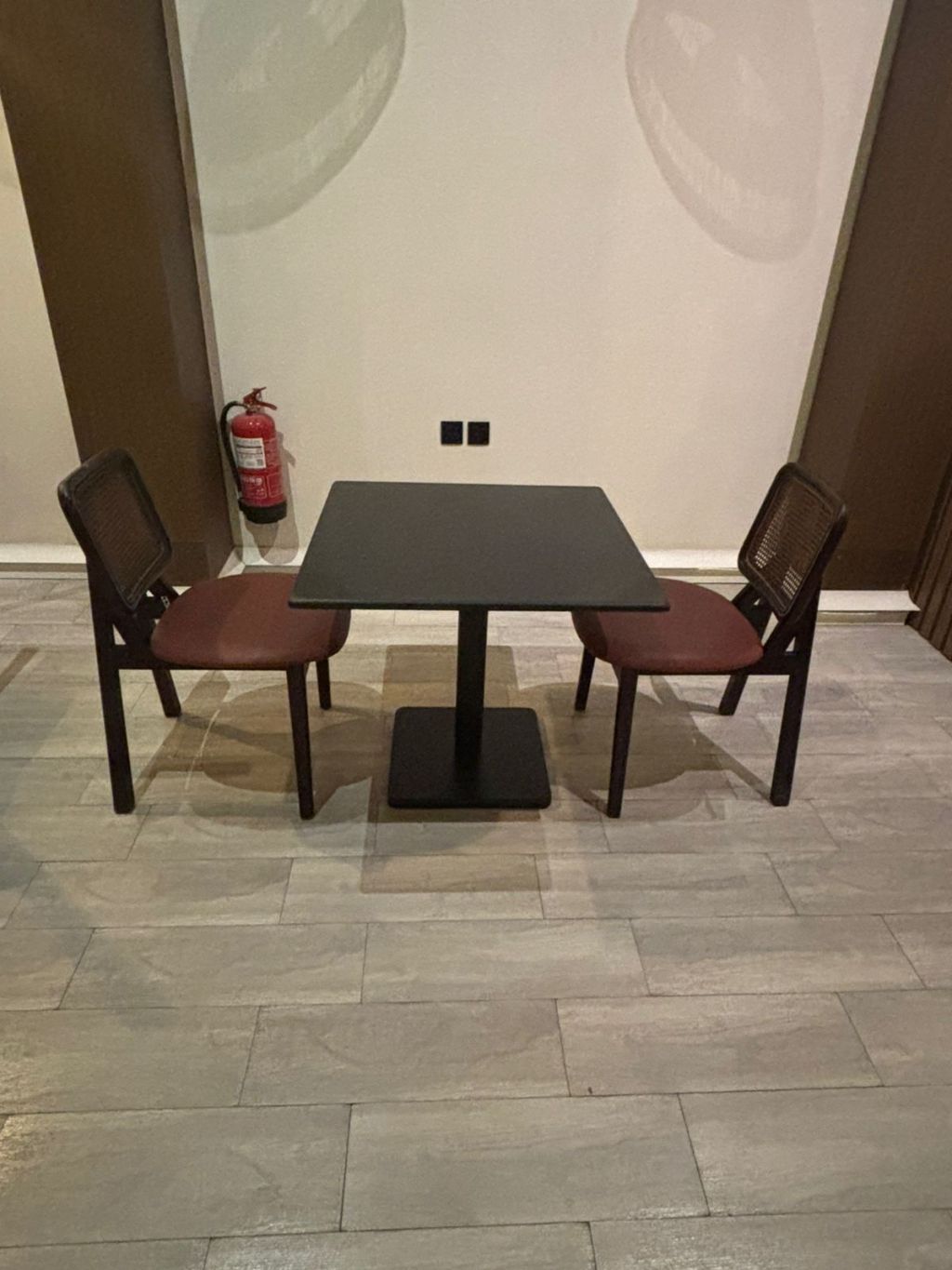 كراسي وطاولات فاخرة للبيع طاولة صغيرة 80*80 (رخام جرانيت) العدد 8 طاولة كبيرة 180*90 (رخام جرانيت) العدد 4 كراسي خشب زان فاخر العدد 22