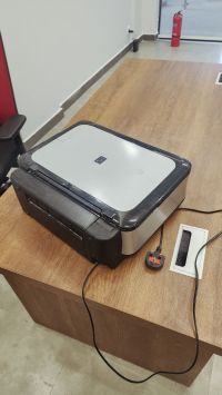 طاولة مكتبية للبيع مقاس 80*160 سنت مع الكرسي متحرك دائري وعجلات والأدراج شبه جديد + طابعة ملونة كانون تحتاج حبر فقط للمعاينة العريجاء الوسطي (رقم الجوال يظهر عند الضغط على زر تواصل) المكتب مع الطابعة 800 ريال