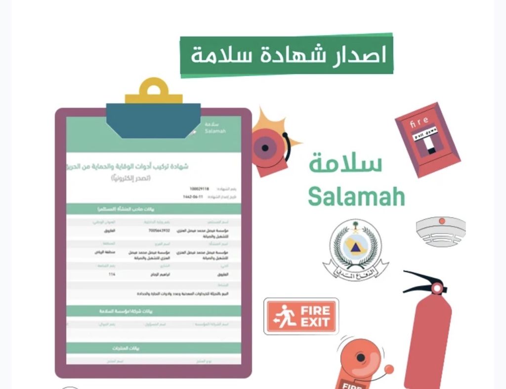 اصدار وتجديد تراخيص الدفاع المدني سلامة فوري والدفع بعد الانجاز