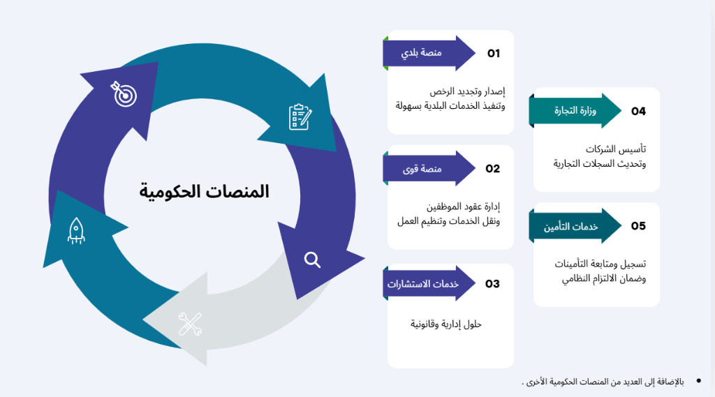 ننجز معاملاتك الحكومية بكل سهولة نقدم لك خدمات متكاملة لإدارة وانجاز معاملاتك عبر المنصات الحكومية، باحترافية عالية وسرعة في التنفيذ، لتوفر وقتك وتضمن التزامك الكامل بالأنظمة. منصة بلدي منصة قوى وزارة التجارة خدمات التأمينات خدمات الاستشارات الادارية والقانونية بالاضافة الى العديد من المنصات الحكومية الأخرى سرعة في الانجاز دقة في التنفيذ التزام كامل بالأنظمة تواصل معنا، ودعنا نكون شريكك الموثوق في