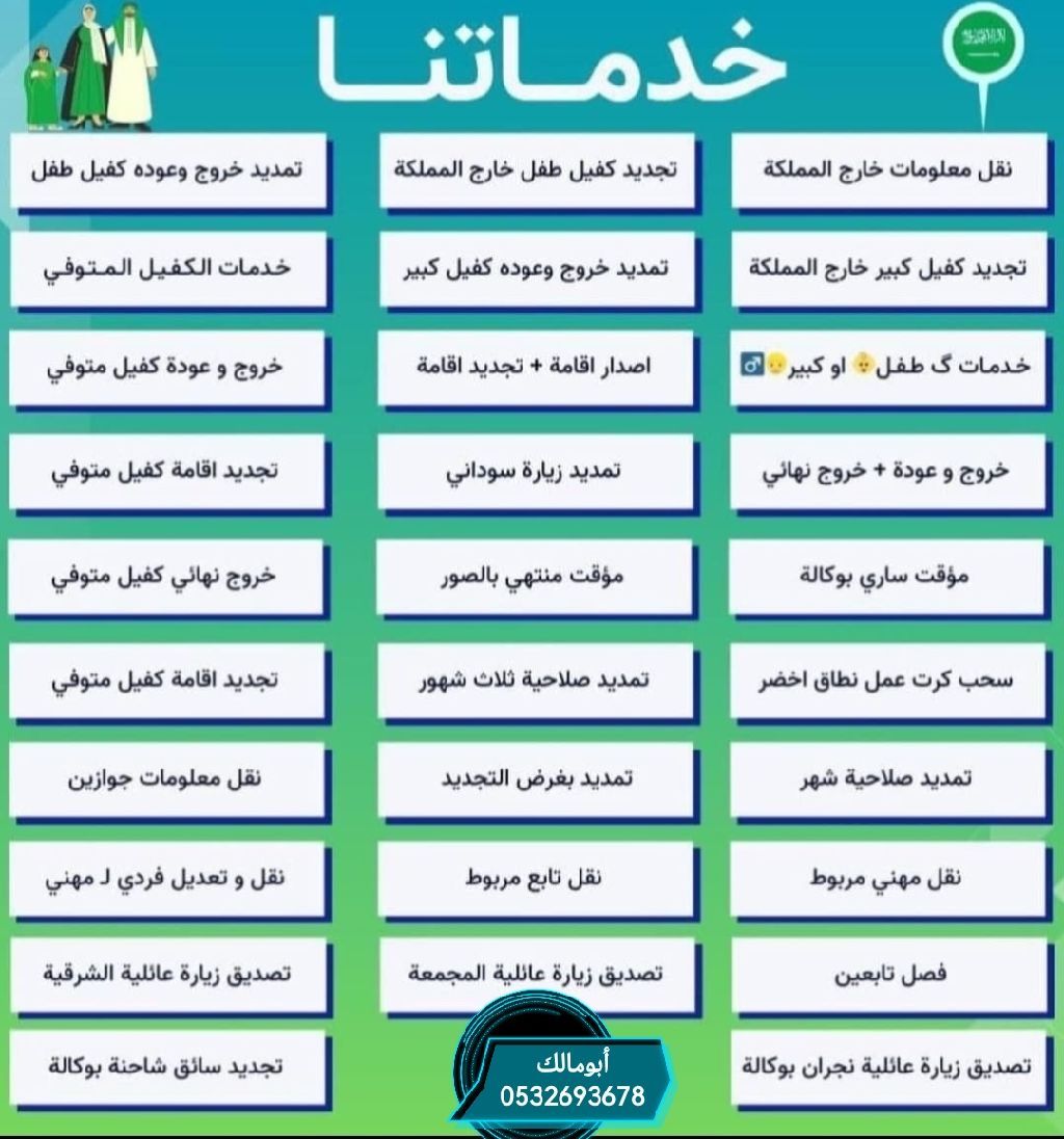 Abu Malik provides you with all public services and follow - up. You are in your place, we serve you via WhatsApp. Experience in most of the sites for labor services such as Absher, Muqeem, Qawi, Madad, Labor and Social Insurance