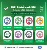 شهادات الأيزو نوفر لك جميع الخدمات لحصولك علي شهادات الأيزو iso certificataion ولدينا نظام تأهيل للشركة وتدريب للأفراد وأعضاء الشركات بأكبر الخصومات 9001 ادارة نظام الجودة 14001 ادارة سلامه البيئة 45001 ادارة الصحة والسلامة المهنية 27001 نظام ادارة أمن المعلومات 50001 نظام ادارة الطاقة تواصل معنا لمعرفة التفاصيل وطلب الشهادة