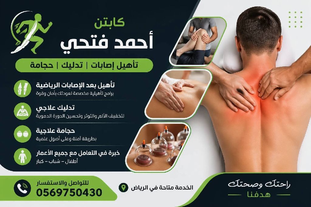 لو بتعاني من تعب، الم في العضلات، أو إجهاد مستمر الحل عندنا خدماتنا الحجامة (سنة عن النبي محمد وفوائدها مثبتة) التأهيل الرياضي لاصابات الملاعب فوائد الحجامة تنشيط الدورة الدموية تقليل الالم والتوتر تحسين النشاط العام التأهيل الرياضي علاج الاصابات تقوية العضلات رجوع أسرع للملاعب وفك الشد