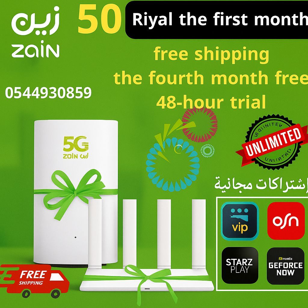 عرض خاص لفترة محدودة 50 ريال فقط انترنت 5G لا محدود + راوتر فوري السعر يشمل الشحن + التركيب في نفس اليوم + الضريبة العرض ساري لفترة قصيرة جدا للتواصل