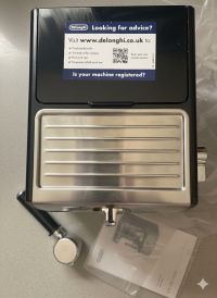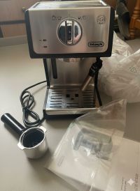ماكينة دلونجي صانع قهوة - أسود معدني لتحضير قهوة اسبريسو وكابتشينو مثاليين في كل مرة. مميزات أساسية غلاية من الفولاذ المقاوم للصدأ، حامل مرشح احترافي، خزان مياه شفاف وقابل للازالة (سعة 1.1 لتر) نظام كابتشينو قابل للتعديل، نظام الايقاف التلقائي الالكتروني، صينية تقطير قابلة للازالة، منظم حرارة مزدوج، هذه الماكينة شبه جديدة مستخدمة مرتين استخدام شخصي، معها جميع أغراضها بالكرتونة حقتها، للجادين