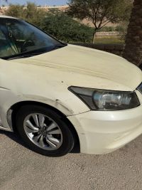 Honda Accord 2009 model, pearl white color, mileage 485,000 kilometers. Registration expired since 2013. The car was involved in an accident - damaged right and left fenders. The hood, fenders, front bumper, and grille have been replaced. The right mirror has been replaced, and the left mirror needs replacement. The engine has a slight oil leak. The transmission is in good condition. The car's chassis and underbody need renewal. The car's paint is intact with scratches that need repair. Steering system.