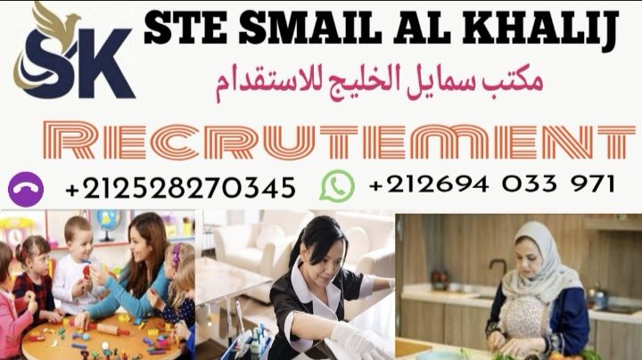 نحن مكتب سمايل الخليج للاستقدام يوفر لكم من المغرب عمالة منزلية من مختلف المجالات / عاملات نظافة / مربيات اطفال / طباخات منزليات وجميع العمالة المنزلية بكفاءات عالية للطلب أو الاستفسار يرجى التواصل معنا عبر أرقامنا