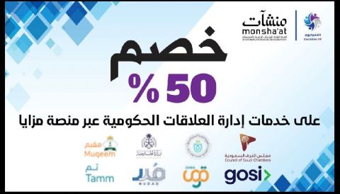 يسعدني ابلاغكم بأن شركة حلول التنفيذيون المتطورة تقدم خصم خاص بنسبة 50 على خدمة إدارة العلاقات الحكومية، وذلك عبر منشاءات - منصة مزايا. كل ما عليكم هو 1 الدخول على منشاءات 2 اختيار منصة مزايا 3 البحث عن شركة حلول التنفيذيون المتطورة 4 اختيار الباقة المناسبة حسب عدد الموظفين لديكم منشاءات هي منصة حكومية معتمدة، والخصم يطبق مباشرة عند اختيار الباقة