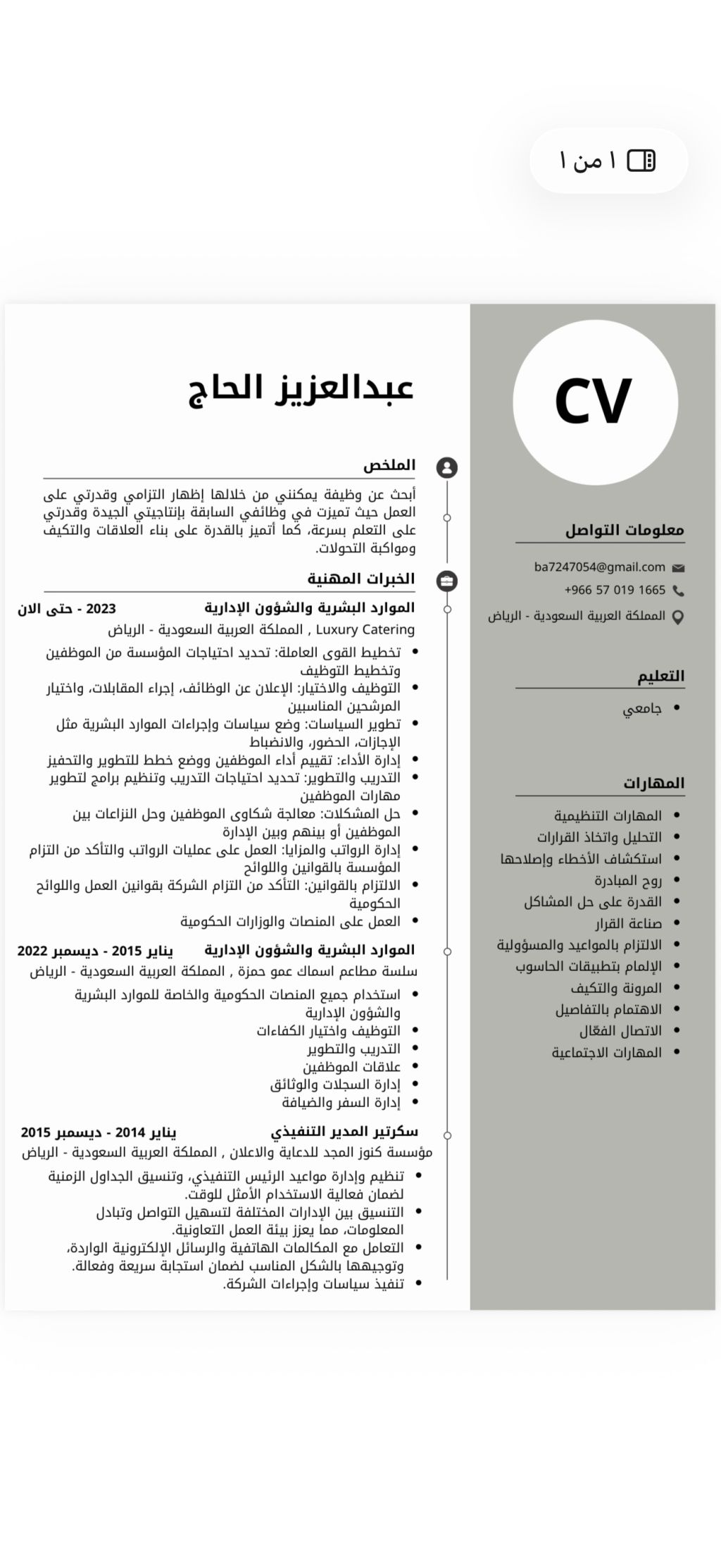 ابحث عن وظيفة موارد بشرية خبرة أكثر من 12 سنة في مجال الموارد البشرية المهنة زوج مواطنه التواصل واتساب أو اتصال