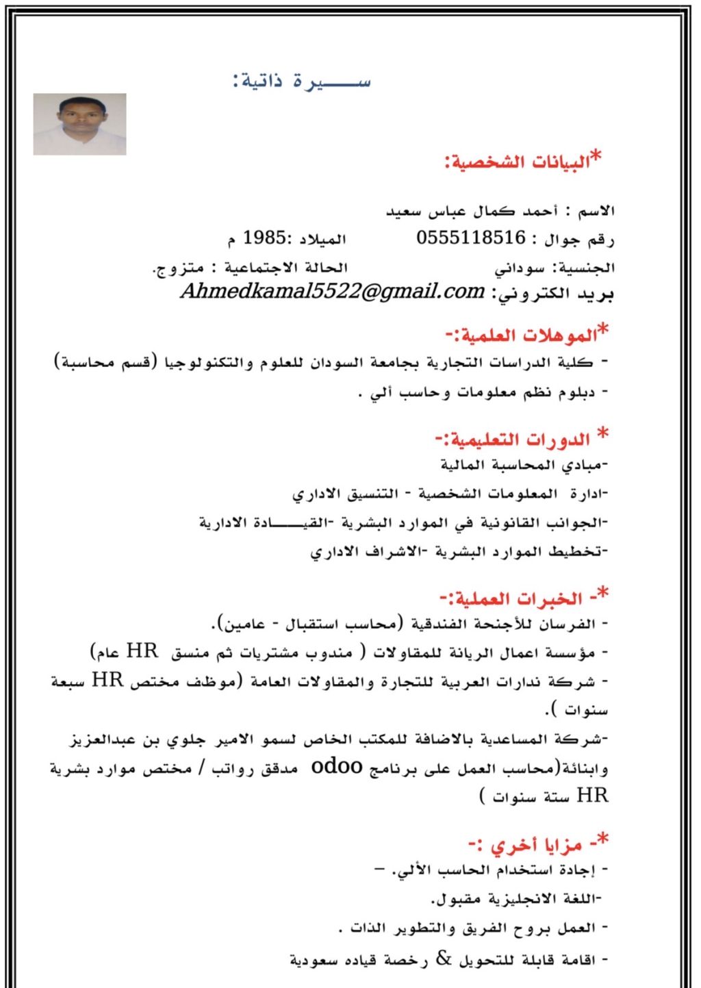 أخصائي موارد بشرية خبرة 14 سنة في المملكة ملم بادارة المنصات الحكوميه ادارة الموظفين وتنظيم ملفات العماله اختيار الموظفين حسب الاحتياج انشاء الرواتب