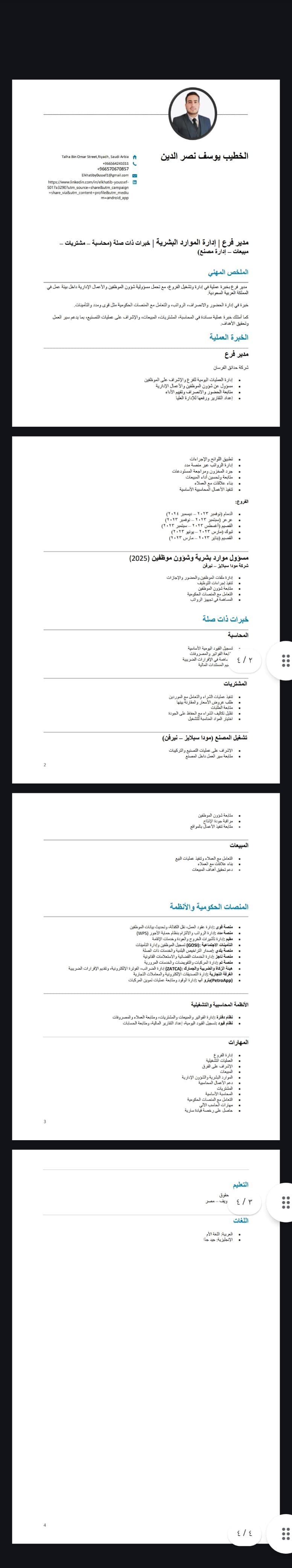 امتلك خبرة عملية في الموارد البشرية وإدارة العمليات داخل المملكة العربية السعودية، مع خبرة في تشغيل الفروع وإدارة شؤون الموظفين والعمليات الادارية، بما يشمل متابعة الأداء، والالتزام بالأنظمة الحكومية. خبرة في إدارة الحضور والانصراف، الرواتب، والتعامل مع المنصات الحكومية مثل قوى ومدد والتأمينات. امتلك خبرة عملية في إدارة وتشغيل الفروع. كما امتلك خبرة عملية مساندة في المحاسبة، المشتريات، المبيعات