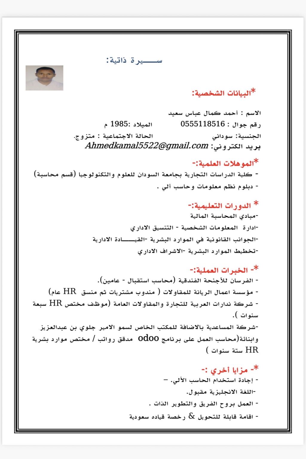 أخصائي موارد بشرية خبرة 14 سنة بالمملكة في مجال شؤون الموظفين وتنظيم الملفات والبيانات وتحديثها والرواتب والأجور وأنظمة العمل
