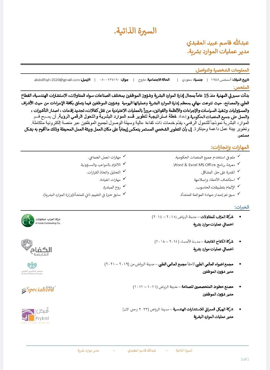 مسؤوليات مدير عمليات الموارد البشرية الاشراف على العمليات اليومية يتولى لقسم الموارد البشرية بشكل فعال. إدارة التوظيف والاختيار جذب المواهب المؤهلة وتعيينها وتأهيلها. التدريب والتطوير إدارة برامج التدريب وتحديد مجالات التطوير للموظفين. إدارة الأداء تقييم أداء الموظفين وتحديد الأهداف ومتابعة التقدم. التعويضات والمزايا إدارة الرواتب والمكافآت والتعلم يم الادارية وانهاء الخدمات والمخالصات