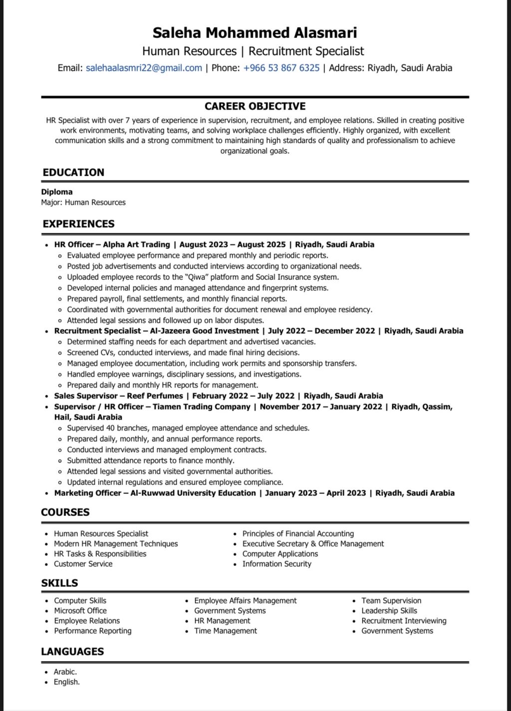 Seeking Work in Human Resources in Saudi Arabia