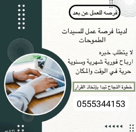 اعلان عن وظائف شاغره للعمل عن بعد للنساء في السعودية في الرياض حي الروضة الراتب حسب لا محدود عمولات عمل مرن عن بعد للنساء يناسب الأمهات والطالبات وكل من تبحث عن فرصة لا يحتاج خبرة أو شهادة ولايؤثرعلى التأمينات الجادات فقط للتواصل