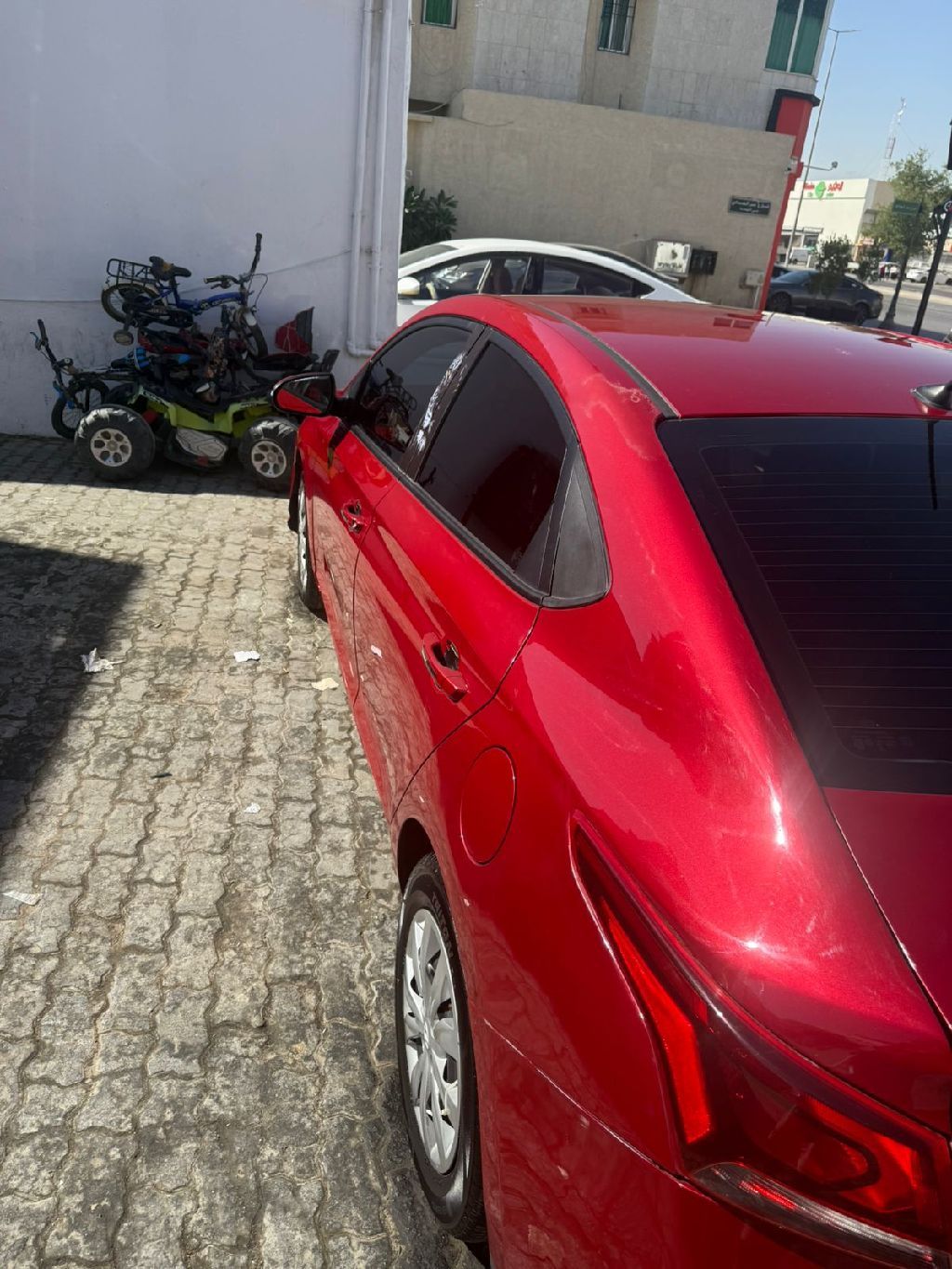 هيونداي أكسنت 2021، ناقل حركة أوتوماتيكي، الممشى 98,000 كيلومتر، اللون أحمر. المحرك وكالة، الهيكل وكالة، الشاص وكالة. أبرز المواصفات: محرك سعة 1600 سي سي، أنظمة السلامة تشمل المكابح، نظام مراقبة ضغط الإطارات (TPMS)، نظام الثبات الإلكتروني (ESP)، نظام القفل المركزي للسائق والراكب، نظام الحماية.