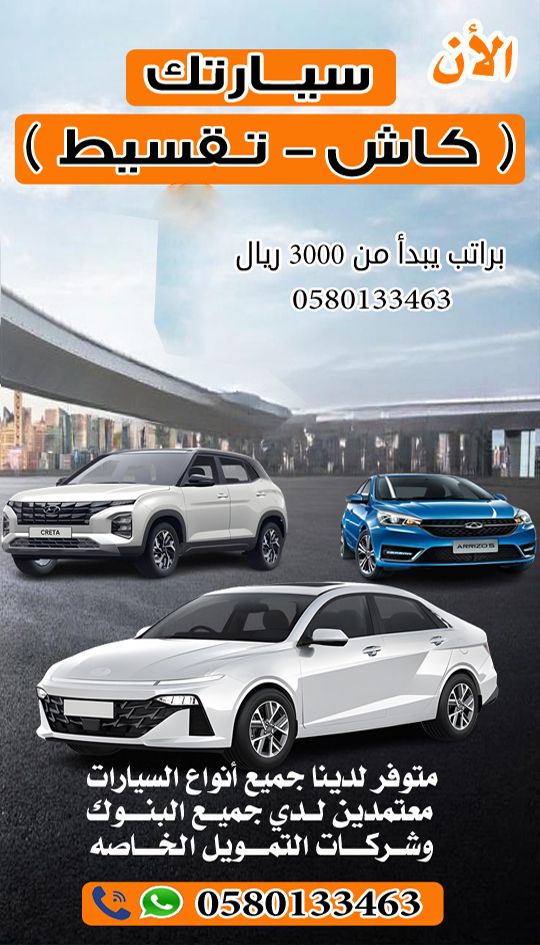 Available cars on installment for residents, installment for 5 years. The installment amount varies according to the type of car and the age of each person according to insurance. If you wish to know more details, you can fill in the data in the form and I will reply to you, or send a message on WhatsApp, or send a private message. Request form to get the account for the required car.