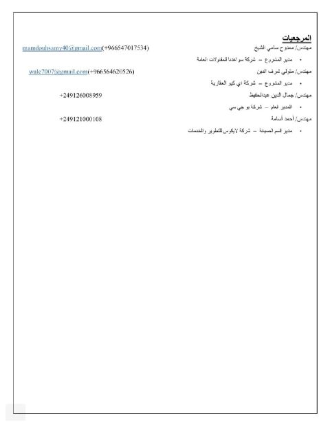 مهندس كهرباء خبرة أكثر من 25 سنة في إدارة وتنفيذ المشاريع وتسعير المناقصات ابحث عن عمل بدوام جزئي أو دوام كامل متواجد في جدة لدي خبرة في إدارة وتنفيذ وتسعير مشاريع المستشفيات والجامعات والمولات وفروع البنوك والمعارض ومشاريع البنى التحتية وشبكات التوزيع، معتمد من الهيئة السعودية للمهندسين ومعتمد من مرافق، خبرة في إدارة التكلفة في مشاريع المقاولات، أجيد العمل على الأتوكاد والبرامج الهندسية الأخرى