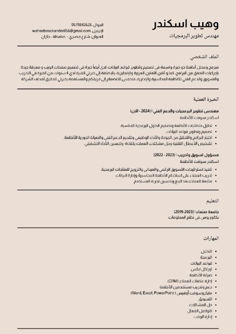دعم فني لبرامج الحسابات بخبرة 5 سنوات في تشغيل أنظمة المحاسبة، حل المشكلات الفنية، متابعة الأعطال، ودعم المستخدمين بكفاءة. خبرة في تدريب العملاء، ضمان دقة البيانات، والتنسيق مع فرق العمل لتحسين الأداء. امتلك مهارات تواصل قوية، تحليل المشكلات، والعمل تحت الضغط، وأسعى لفرصة عمل مناسبة داخل المملكة العربية السعودية