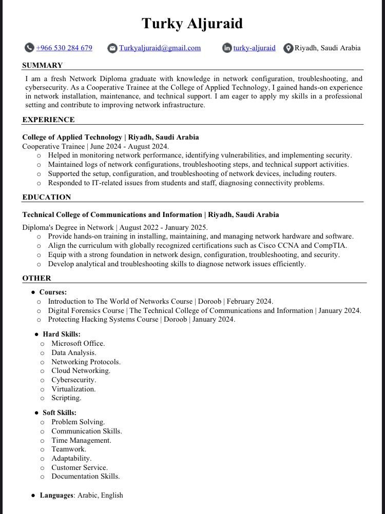 ابحث عن عمل دبلوم فني شبكات تقنية معلومات سعودي حديث تخرج ابحث عن أي فرصه ومستعد فورا