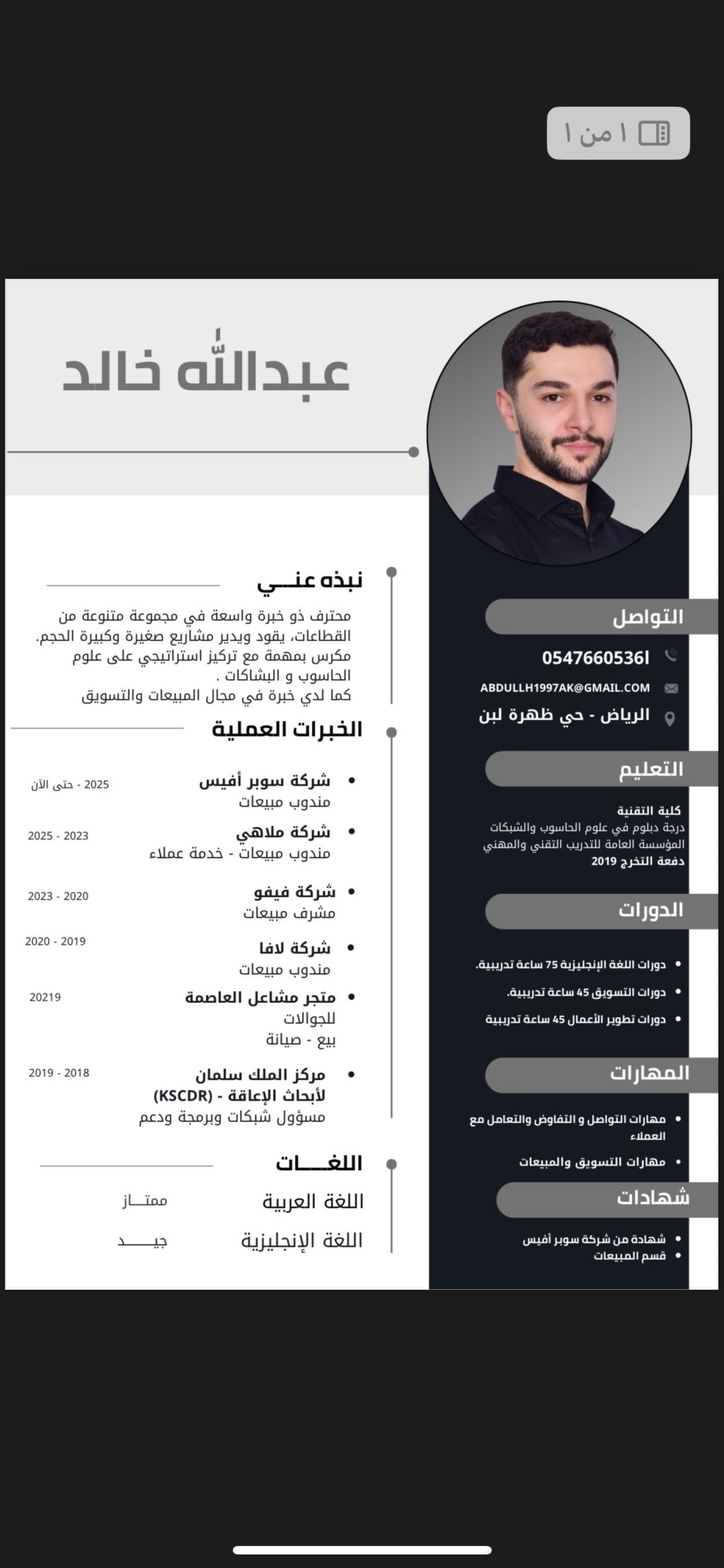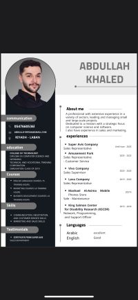 التخصص IT Network ولدي خبرة 7 سنوات في مجال المبيعات