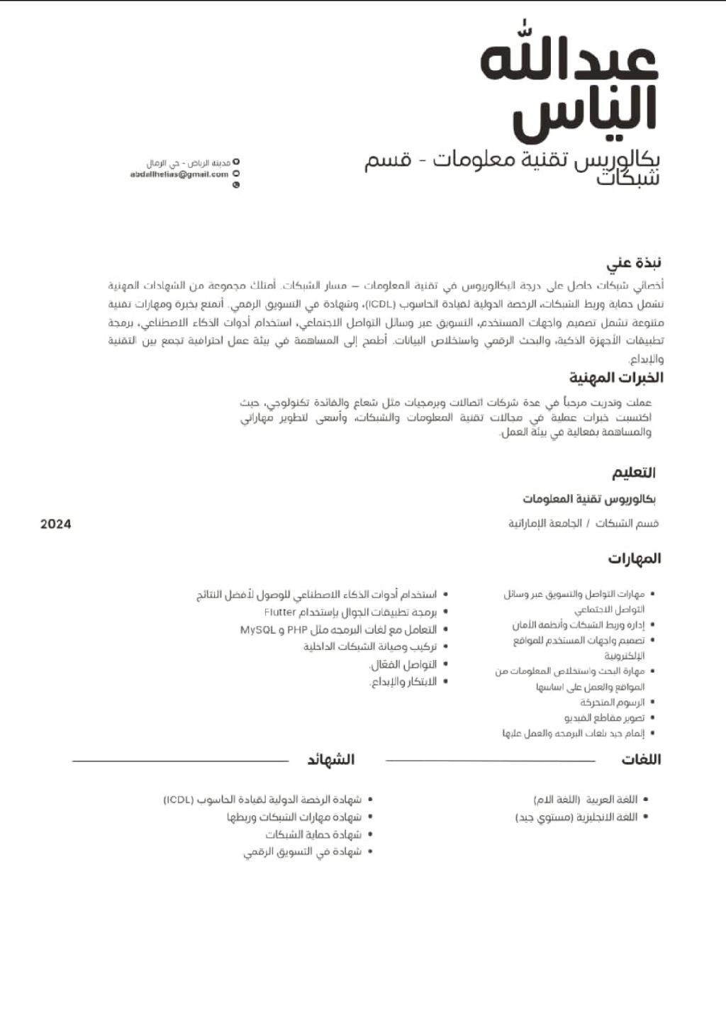 مهندس تقنية معلومات IT يمني الجنسية ابحث عن فرصة عمل في مجال تخصصي حل مشاكل hardwareg software مطور مواقع PHP - باستخدام لغة) Full) stack devloper (JS - HTML - CSS - Laravel - API - MySQL إقامة سارية لمدة شهر واحد) Frontend - Backend (المهنة عامل متواجد في الرياض