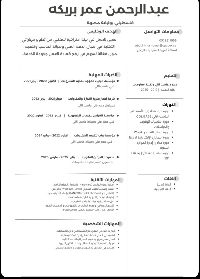 فني حاسب اللي وابحث عن عمل لدي خبرة خمس سنوات