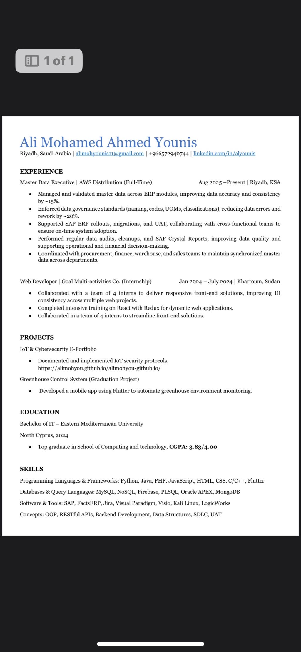 Junior Software Engineer and IT graduate with a strong foundation in backend development, data handling, and full - stack applications. Hands - on experience through academic projects and internships. Proven ability to work across software, data, and enterprise systems with strong problem - solving and collaboration skills