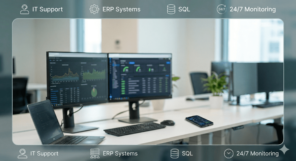 ابحث عن فرصة عمل في مجال تقنية المعلومات (IT support) أو تشغيل مراكز القيادة (Command Center) أنا أحمد خير الله، ولدي خبرة متكاملة في الدعم التقني وإدارة الأنظمة. أبرز المهارات والخبرات التقنية الدعم الفني (IT support) تقديم الحلول التقنية الفورية، صيانة الأنظمة، وإدارة الشبكات الداخلية. أنظمة أل ERP خبرة قوية في التعامل مع أنظمة من الناحية التشغيلية والتقنية. قواعد البيانات