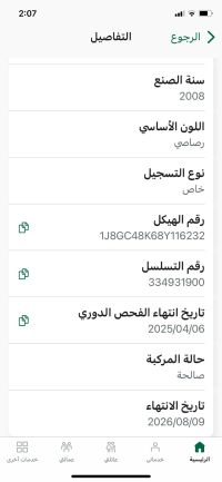 جيب جراند شيروكي ليمتد 2008، ناقل حركة أوتوماتيكي، بنزين، الممشى 300,000 كم، محرك 3700 سي سي / 6 سلندر. تم توضيب المحرك قبل سنتين تقريباً. تم تبديل الشكمان وعمود الدبل والصدام الأمامي والبطارية مؤخراً. الجنط الأصلي الرابع موجود مع السيارة بدون كفر، والمركبة تستخدم جنوط أسباير. الاستمارة سارية حتى 8/2026 والفحص ساري حتى 4/2025. السيارة معروضة للبيع بحالتها الحالية. يمكنك فحصها على مسؤوليتك الخاصة. لا أملك خبرة كبيرة في السيارات. للتواصل.