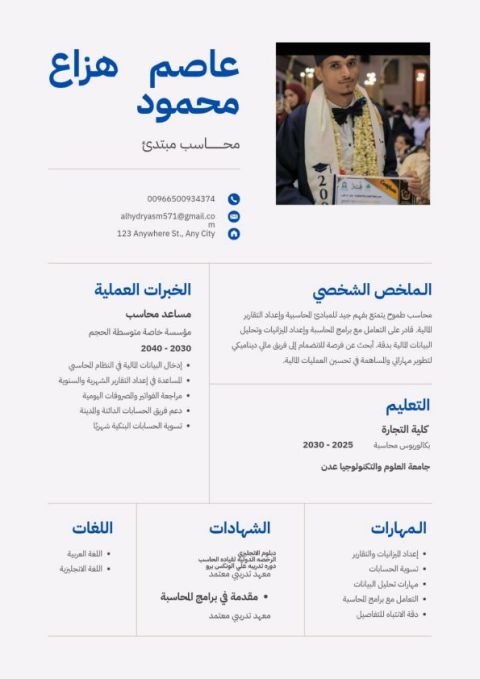 محاسب حديث التخروج ابحث عن عمل خبرة في المطاعم ونشيط جدا