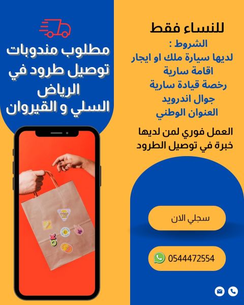 يوجد عمل نساء مندوبات توصيل طرود في الرياض (السلي) العمل فوري لمن لديها خبرة في توصيل الطرود. الرجاء قراءة التفاصيل كاملة قبل التقديم