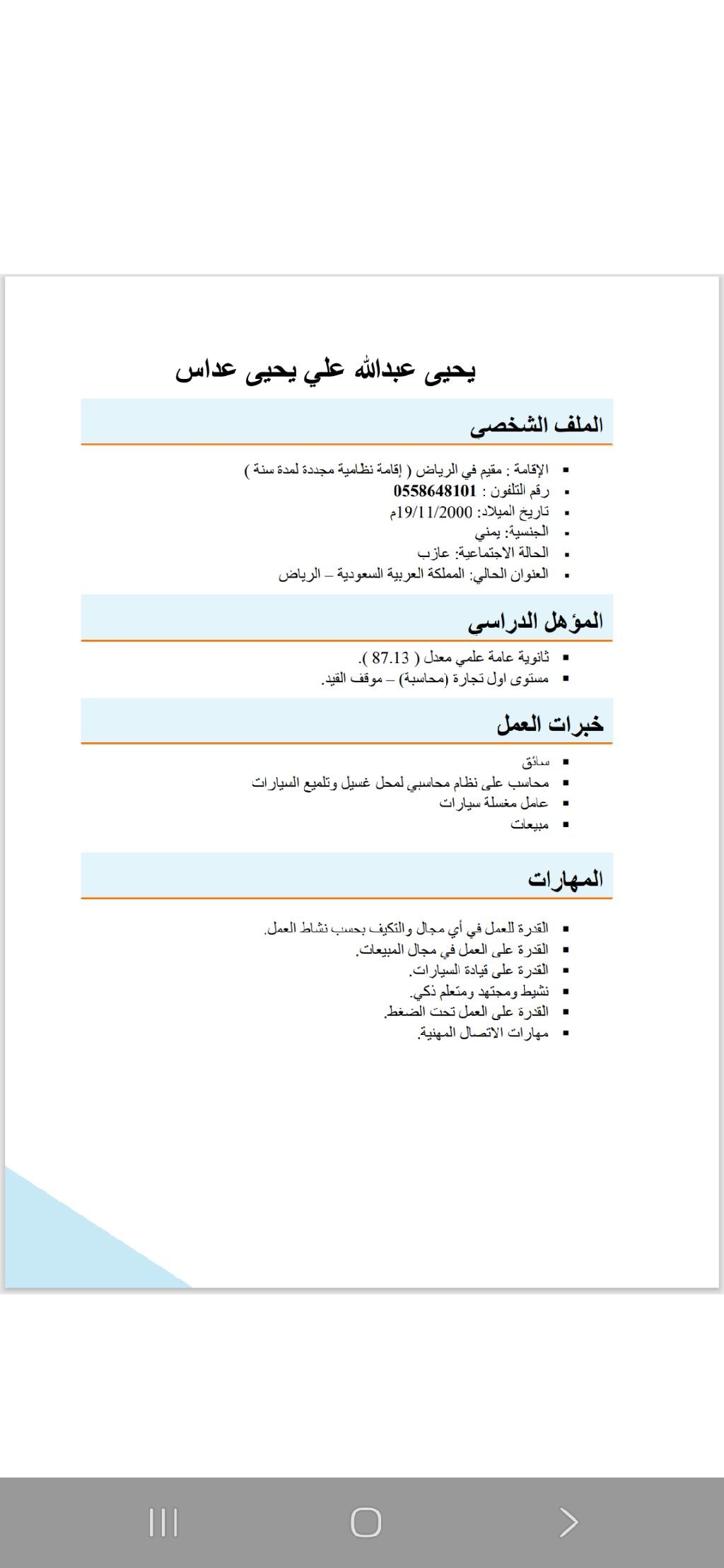 الإقامة سارية الجنسية يمني العمر 25 شاقي وحق شغل مقيم في الرياض ابحث عن عمل في مستودع أو بقالة ترتيب أو مع شركة مواد غذائية تحميل تنزيل وتعبئة وتغليف أو مطعم مباشر أو تقطيع مساعد للتواصل