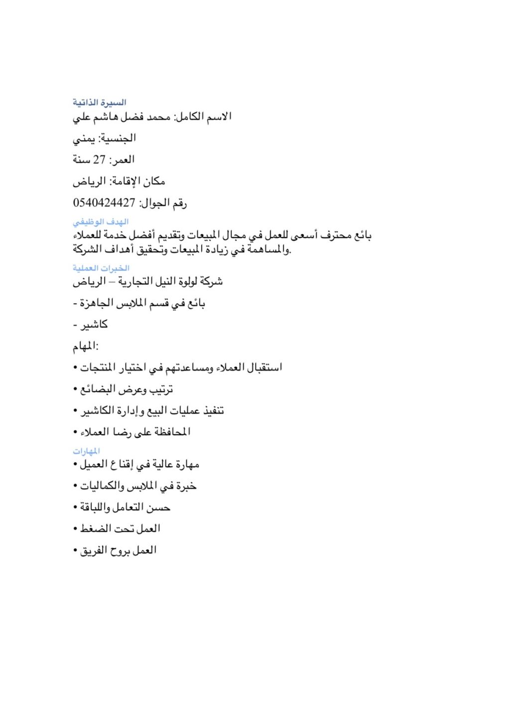 ابحث عن عمل ومقيم في الرياض واقامتي سارية نشيط للعمل وحسن المظهر
