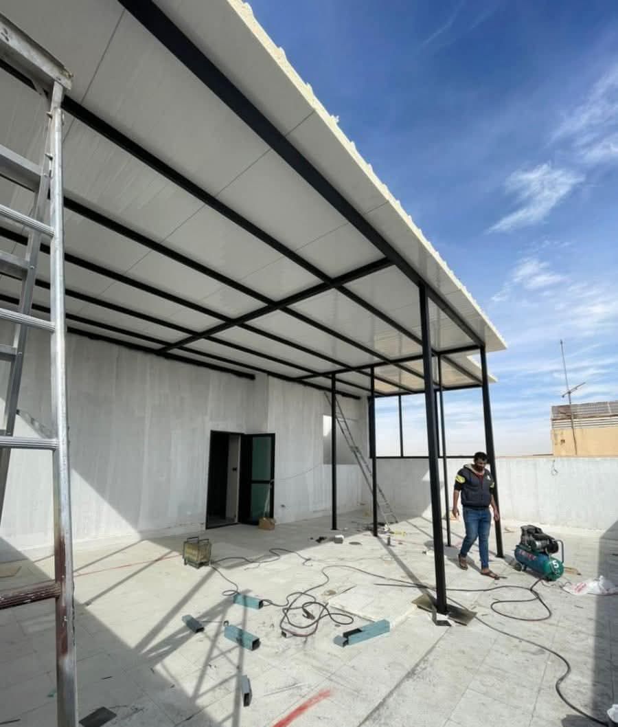 مضلات وسواتر وغرف سندويش بنل وجميع أعمال الحدادة والألومينيوم