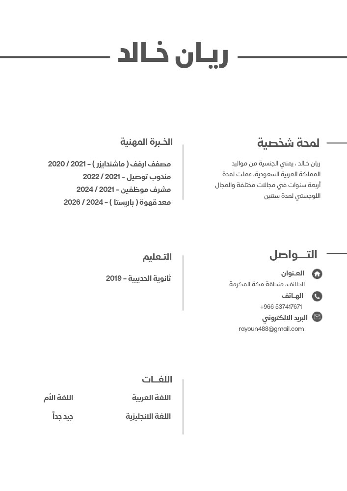 I want a job. Rayan Khaled, Yemeni, born in Saudi Arabia, is currently in Taif, His residency permit is renewed and ready for transfer