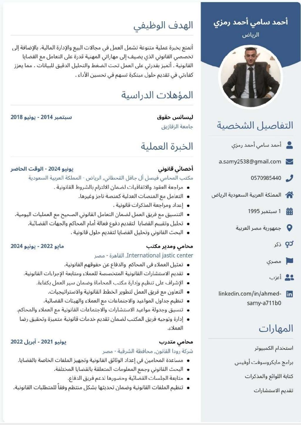 أخصائي قانوني في الرياض، لدي خبرة عملية في اعداد المذكرات القانونية ومتابعة القضايا كما امتلك خبرة في التعامل مع المنصات العدلية مثل ناجز معين تراضي وإدارة الاجراءات النظامية عبرها بكفاءة أرغب في الحصول على فرصة عمل مناسبة في مجال القانون