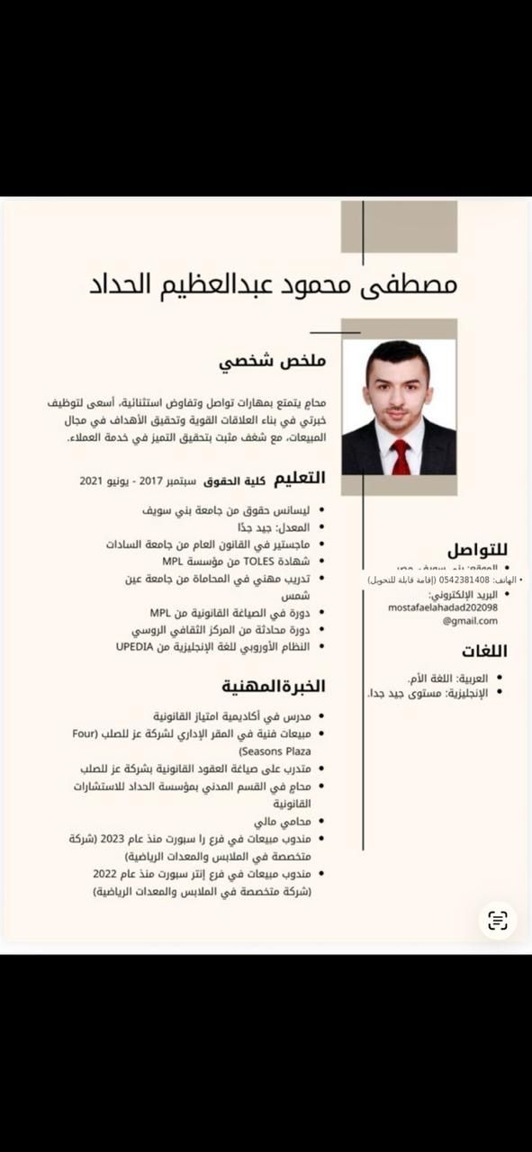 المؤهل معي ماجستير فالقانون الخاص وخبرة 8 سنوات في مجال القانون المدني والأسرة والأحوال الشخصيه أجيد برامج الكمبيوتر (ورد وأكسيل ومايكروسوفت) وأتكلم انجليزي جيد جدا وجاهز للعمل معيا اقامة قابلة للتحويل ونقل كفالة مقيم في مكة وجاهز للعمل بأي مكان داخل المملكة