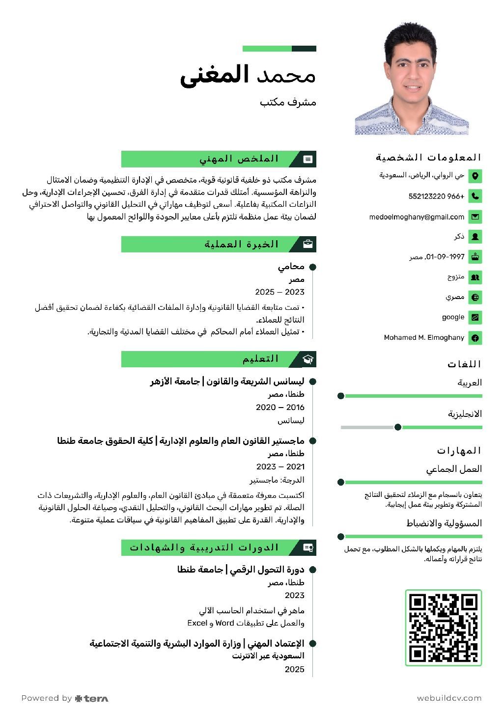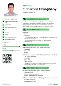 Look for a job as an office supervisor or an experienced lawyer in Egyptian courts Forat least 5 years An Egyptian aged 29 years with a bachelor's degree in Sharia and law in addition to a master's degree in public law and administrative sciences Familiar with Saudi platforms (Absher - Strong - Accomplish - Insurances) I am good at working on Word and Excel