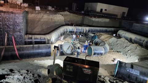 كادر لحام مع جميع معدات اللحام محترفين بمد المواسير بأيدي فنية. مستعدين لانجاز جميع أعمال اللحام