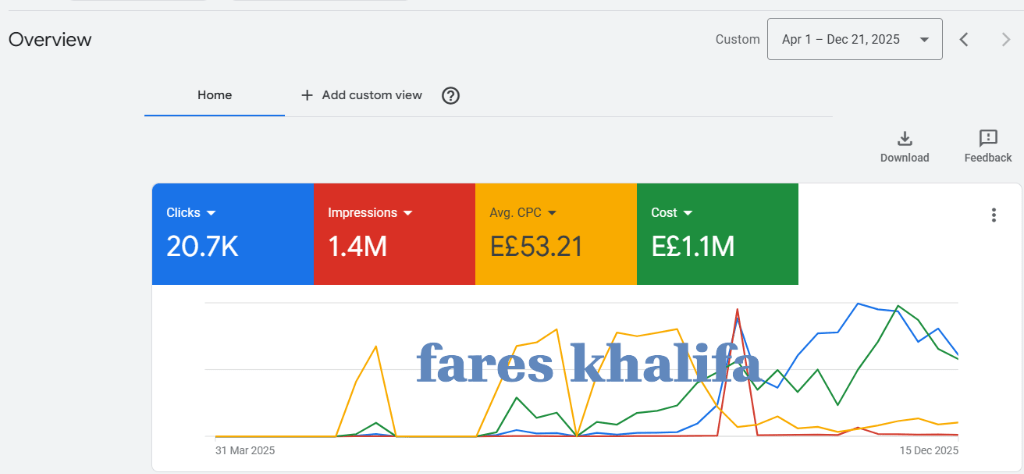 أنا فارس خليفة Google Ads Specialist متخصص في اعلانات جوجل وعندي خبرة كبيرة في إدارة حملات اعلانات جوجل لمجالات مختلفة. ممكن أساعدك في عمل حملات اعلانات جوجل لنشاطك التجاري، خصوصا إن فيه حجم منافسه كبير في معظم الأنشطه والقطاعات اللي تخص مجالك، وده هيفيدك بشكل كبير في الوصول لجمهور أكبر وزيادة النتائج. لو حابب، تعرف أكثر وأشرح لك أزاي تستفيد بأفضل شكل من اعلانات جوجل. لو حابب تتواصل، أنا