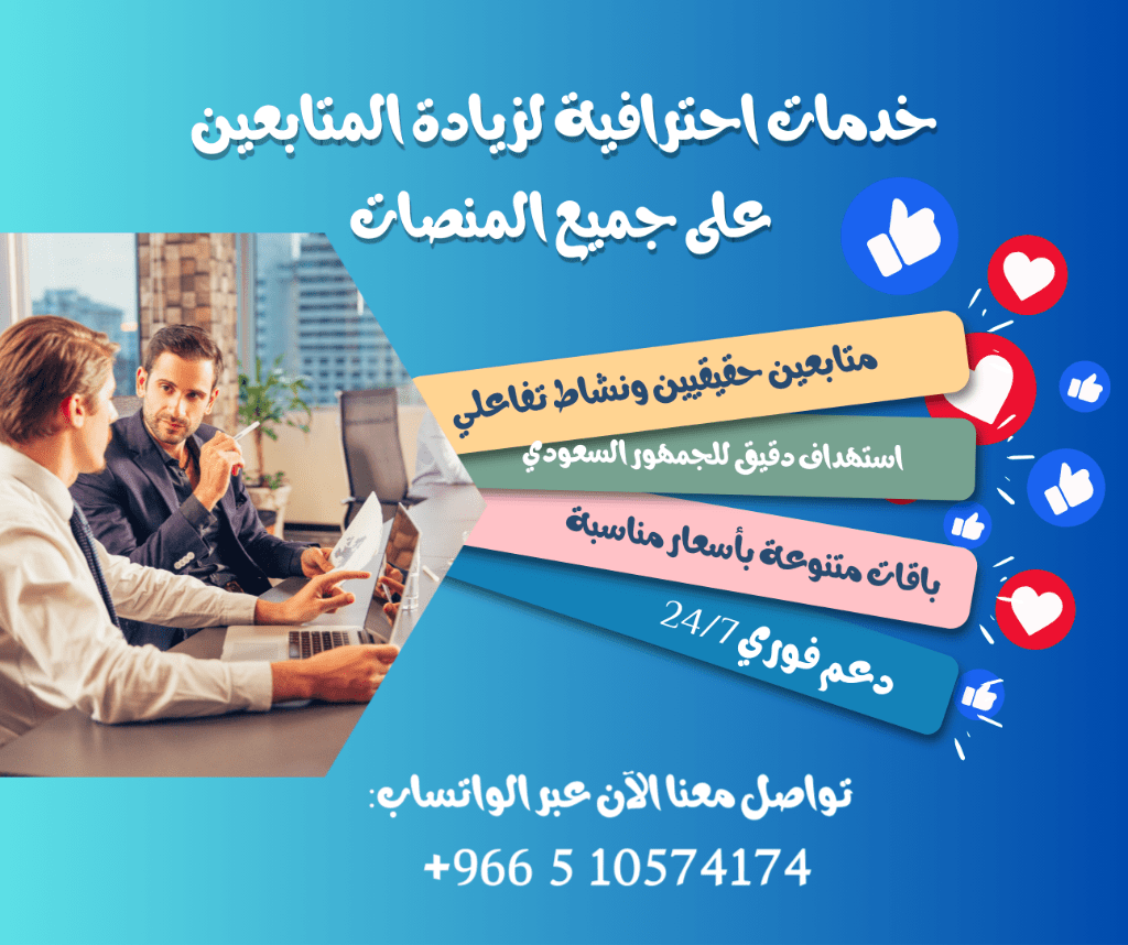Increase Your Followers Now Professional services to boost followers on all platforms Real followers & active engagement Precise targeting for the Saudi audience Various packages at affordable prices Instant support 24/ 7 Contact us now via