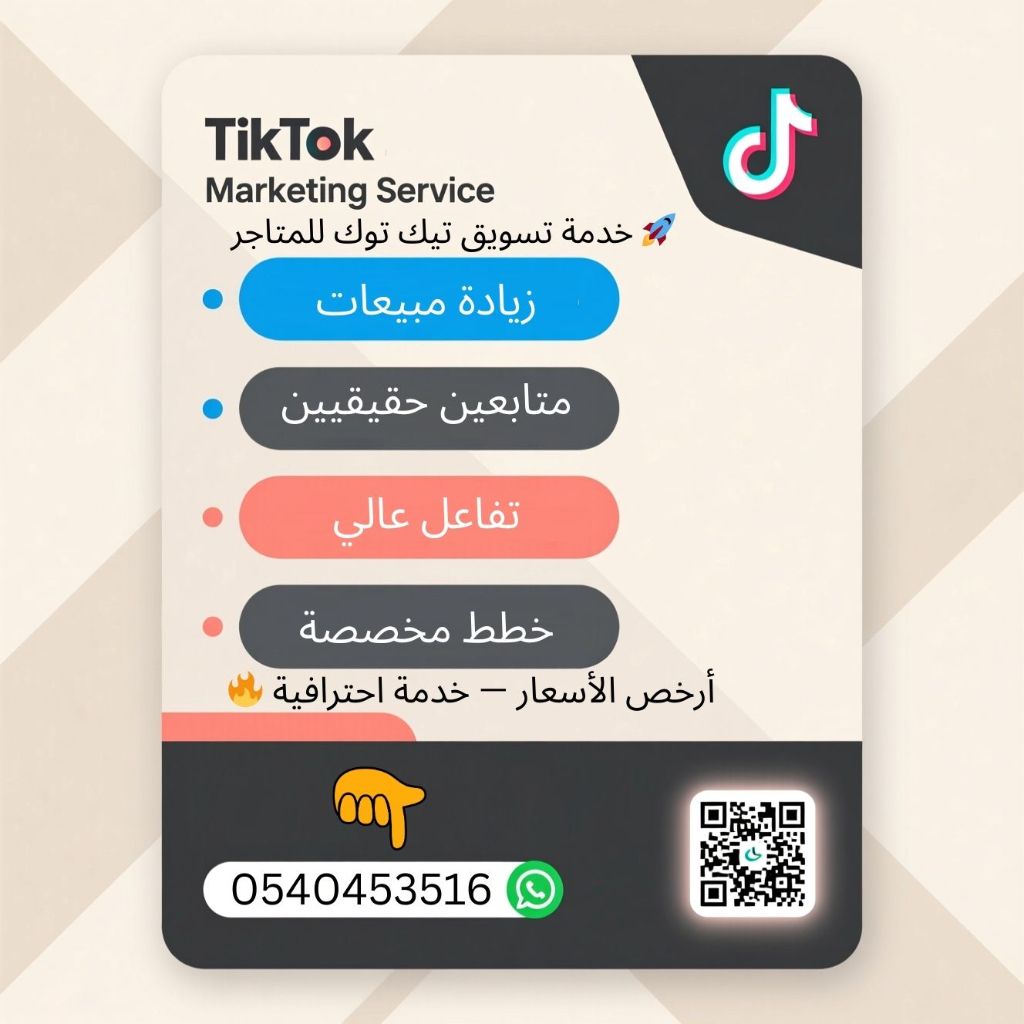 فرصة حقيقية خدمة تسويق تيك توك للمتاجر أرخص الأسعار وأفضل الخدمات للتسويق على تيك توك لزيادة مبيعات متجرك المميزات خدمة تسويق تيك توك للمتاجر متابعين حقيقيين تفاعل عالي، زيادة مبيعات خطط مخصصة لا أحتاج الى حسابك على التيك توك فقط التواصل للتوضيح للجادين فقط
