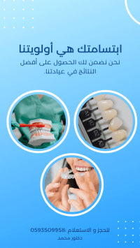 طبيب أسنان فلسطيني الجنسية أقدم جميع خدمات الأسنان الخبرة 8 سنوات أتشرف بمتابعتكم لحسابا تي على السوشيال ميديا تقويم الأسنان الشفاف والمعدني تركيبات الأسنان الثابتة والمتحركة عدسات الفينير واللومينيير تنظيف الجير ومعالجة مشاكل اللثة علاج الجذور ونزع العصب تيجان الزير كون والايماكس الوتد وألد عامة الحشوات التجميلية تبييض الأسنان ريكنتوور خلع الأسنان الجراحي والبسيط للحجز والمواعيد تواصل معنا