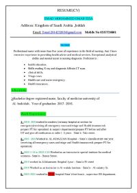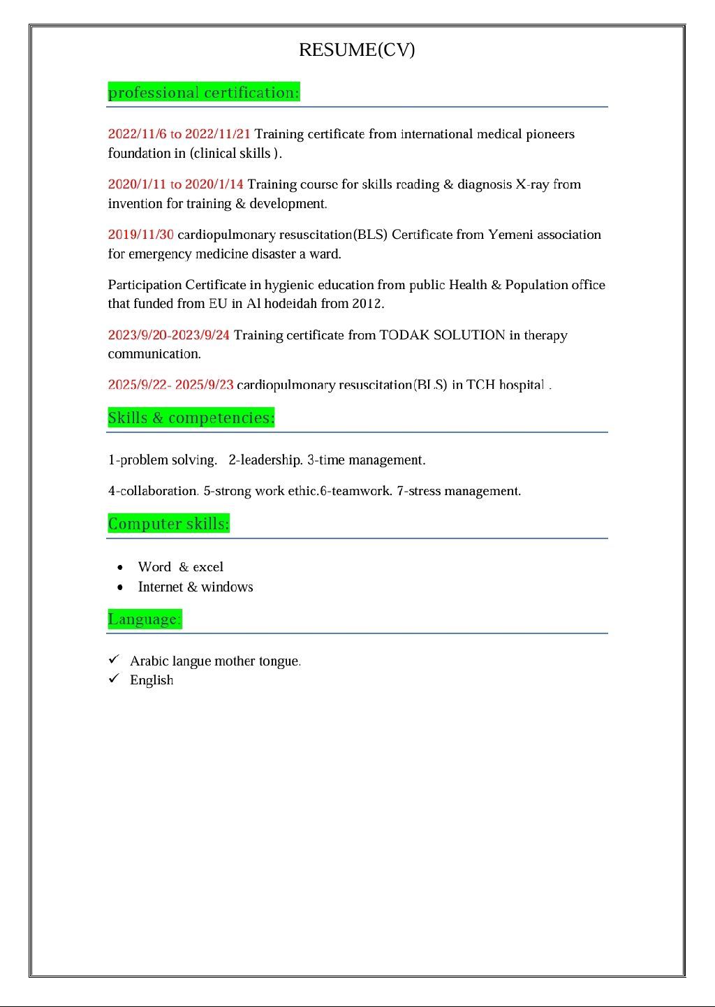 بكالوريوس أخصائي تمريض 7 سنوات خبرة في مهارات التمريض، لدي القدرة على العمل في جميع أقسام المستشفى. أتعامل مع الحالات الطارئة بما يتناسب مع نوع الحالة، التعمال مع حالات القسم بكل سهولة واعطاء الادوية المقررة بكل دقة، ومراقبة العلامات الحيوية واعطاء التغذية عن طريق الأنبوب الانفي أو المعدي ومراقبة نسبة الأكسيجين في الدم. كما أنه لدي الخبرة في العلاج الطبيعي واعادة التأهيل، والرعاية المنزلية